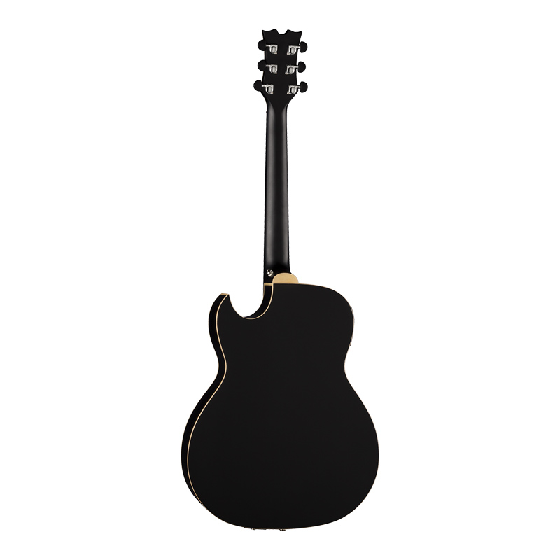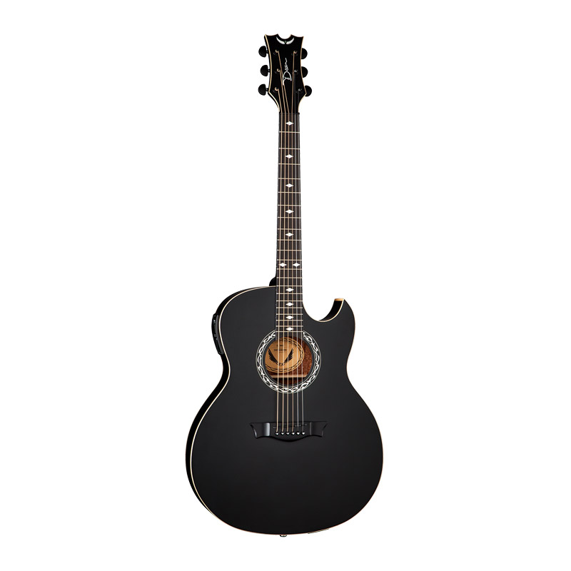 The Dean Exhibition Acoustic-Electric Guitar is designed to be a perfect companion onstage. Made with mahogany, the thin body of the Exhibition adds comfort while helping to reduce feedback when plugged in. The slim D-shaped profile of the set mahogany neck is extremely comfortable for electric guitarists and features a 24-1/4" scale. Appointments include a smooth ebony fingerboard, pearl diamond inlays, black NuBone nut & saddle, Grover tuners, and DMT G05 electronics with built in tuner.